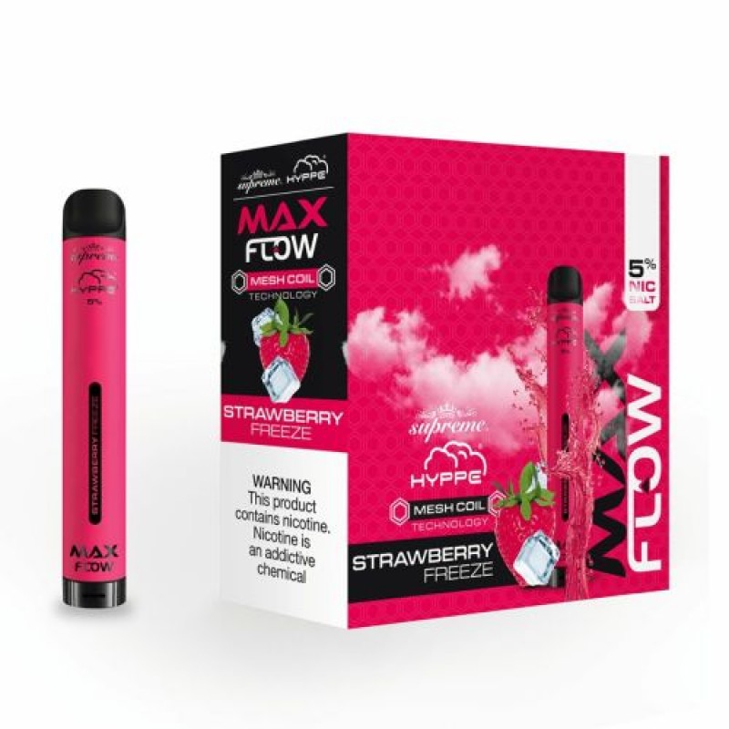 This brand is known for making delicious flavors. The Hyppe Max Flow Mesh has 34 available e-liquid flavors which include; banana ice, strawberry banana, lush ice, strawberry guava, guava ice, peach ice and a mighty mint flavor. Check out our collection of disposable vape bundles.