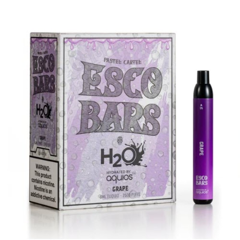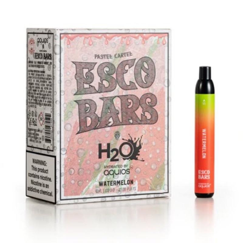 Pastel Cartel is back as they teamed up with H2O hydrated by Aquios to deliver their NEW Esco Bars MESH disposable vape pod device. Aquios Labs and Pastel Cartel Esco Bars e-liquids is pre-filled with a revolutionary technology! The first generation of Aquios was created and supports 30% water.  This disposable vape system offers users purer flavor, reduced throat irritation and higher bioavailability for even faster satisfaction. The Pastel Cartel H2O Esco Bars MESH are powered by a 1000mAh battery and produce more than 2500 puffs!  The 6mL capacity of nicotine e-liquid flavors are true to taste and available in 5 flavors.  Check out our collection of disposable vape bundles.