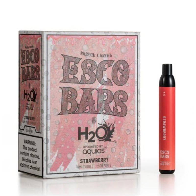 Pastel Cartel is back as they teamed up with H2O hydrated by Aquios to deliver their NEW Esco Bars MESH disposable vape pod device. Aquios Labs and Pastel Cartel Esco Bars e-liquids is pre-filled with a revolutionary technology! The first generation of Aquios was created and supports 30% water. This disposable vape system offers users purer flavor, reduced throat irritation and higher bioavailability for even faster satisfaction. The Pastel Cartel H2O Esco Bars MESH are powered by a 1000mAh battery and produce more than 2500 puffs! The 6mL capacity of nicotine e-liquid flavors are true to taste and available in 5 flavors. Check out our collection of disposable vape bundles.