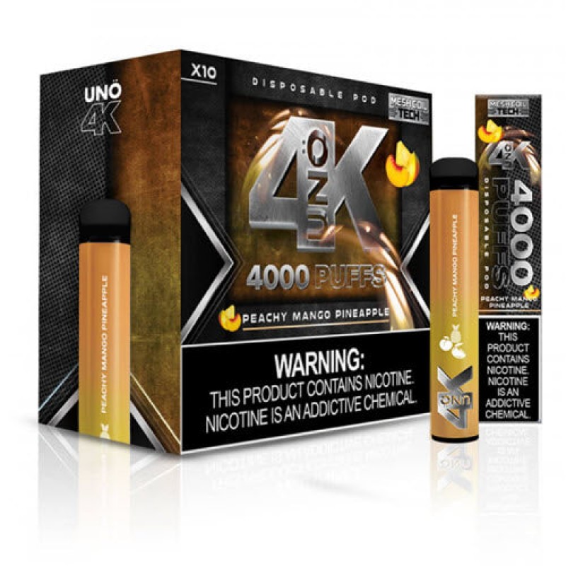 The UNO 4K disposable vape pod is a closed pod system pre-filled with 24 popular flavors from UNO. The UNO 4K brings exciting new flavors and upgrades to their traditional UNO Mas disposable. Each UNO 4K has 9mL of 5% salt nicotine e-liquid and more than 3 times the puff count of 4000 puffs. It contains a 1350mAh battery to last you days. As a plus, the Uno 4K version is square with rounded edges, so it won't roll like other disposables. Check out our collection of disposable vape bundles!