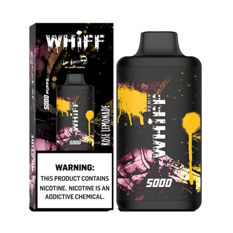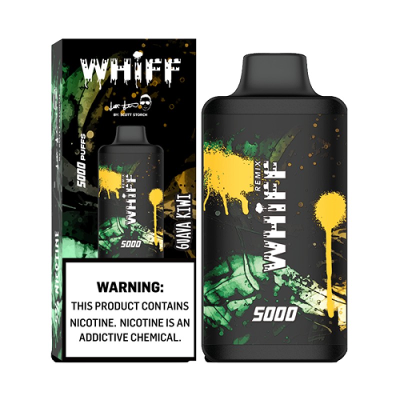 Whiff Remix disposable vape pod by Scott Storch consists of unique flavors from past creations. They don't call is Remix for nothing! The Remix is a pre-filled disposable vape pod system device that is powered by a USB-C rechargeable 650mAh battery (cable not included) and more than 5000 puffs! The 11mL of e-liquid are true to taste, remixed with premium flavors and are delicious. The Whiff Remix disposable vape device is a sleek box shaped device and conveniently easy to carry on the go. Whiff's vape device has a powerful draw that provides plenty of vapor and satisfies your vape needs. Check out our collection of disposable vape bundles.