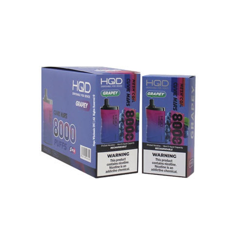The HQD Cuvie MARS disposable vape device is HQD biggest device yet. The HQD Cuvie MARS is a new addition to their HQD Cuvie Plus line. This HQD Cuvie MARS features a rechargeable USB-C 650mAh battery, 18mL of tasty e-liquid and will last you 8000 puffs! It has a super rich e-liquid flavors that separates HQD from the competition. Choose the flavor you love most from the 7 available flavors. It's pocket friendly, easy to carry, easy to use and produces great vapor production! It's hard to go wrong with the HQD Cuvie MARS disposable vape pod device. Check out our collection of disposable vape bundles.