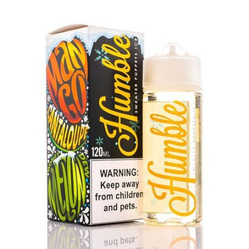 Ice Sweater Puppets by Humble Juice Co is Mango, cantaloupe, and a little bit of honeydew melon on ICE. This flavor is refreshing and very tasty! The best way to experience Humble Juice Co expertly crafted E Liquid is perfectly paired with a Starter Kit or Sub-Ohm tanks.