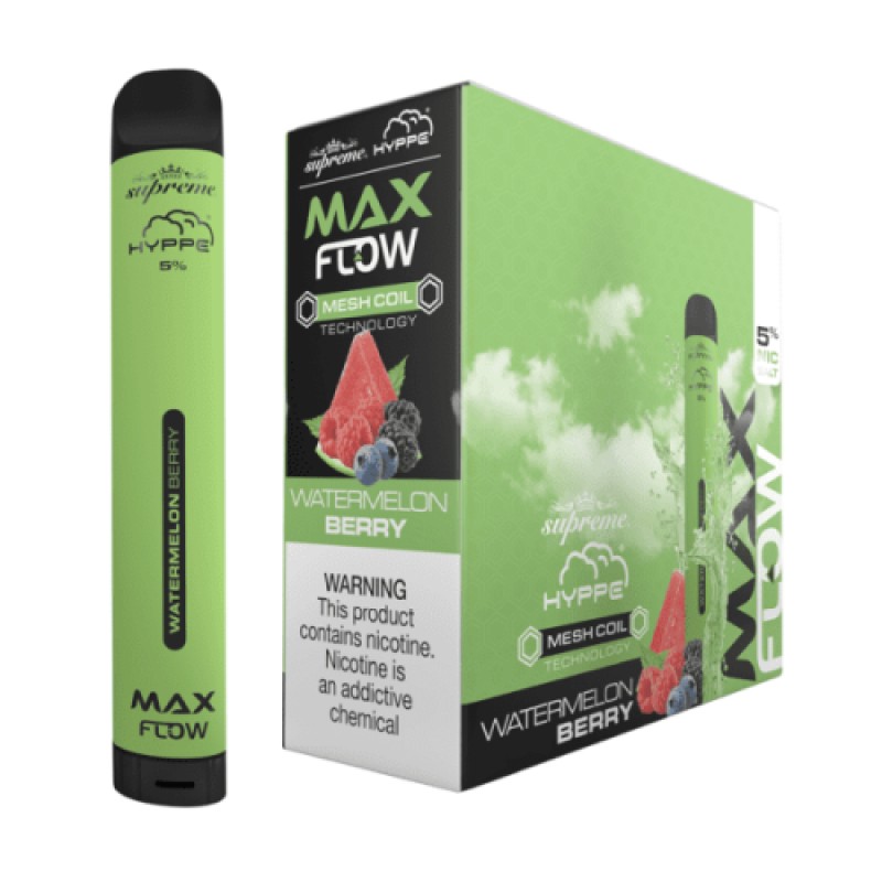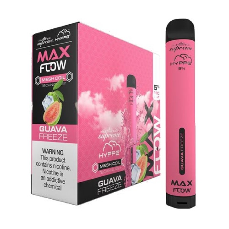 This brand is known for making delicious flavors. The Hyppe Max Flow Mesh has 34 available e-liquid flavors which include; banana ice, strawberry banana, lush ice, strawberry guava, guava ice, peach ice and a mighty mint flavor. Check out our collection of disposable vape bundles.