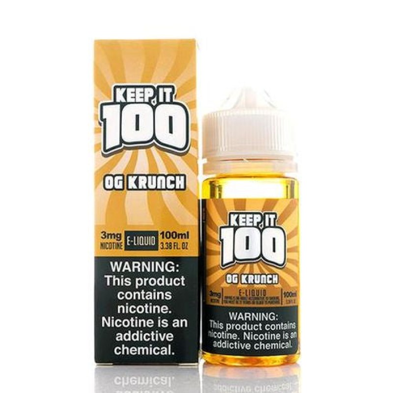 OG Krunch or Krunch (formerly Krunchy Squares) by Keep it 100 e-liquid is an amazing new vape flavor from Keep It 100. It tastes like your favorite cinnamon toast cereal, with a smooth, lively cinnamon, and a rich milk flavor. Even if you're not a cinnamon lover, you'll love this juice! This E Liquid is paired best with a Starter Kit or Sub-Ohm tanks.