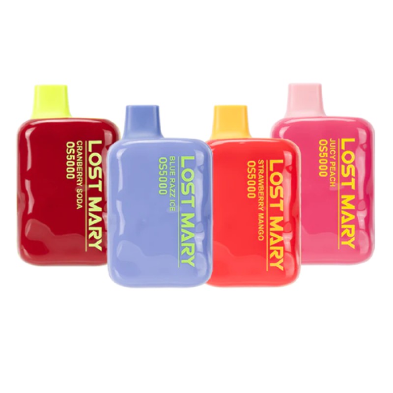 The Lost Mary OS5000 combines performance and style with its unique shell and mesh coil for improved flavor. Lost Mary OS5000 is from EB Design is a pre-filled disposable vape pod system device. Lost Mary OS5000 by E.B Design provides a battery indicator that allows vapers to check on power levels while they are vaping. Lost Mary OS5000 produces 5000 puffs of tasty e-liquid flavors and a generous 13mL e-juice capacity. Each Lost Mary OS5000 has a battery indicator that allows vapers to check power levels while they are vaping. Green, Blue and Red LED colors display the amount of charge left in the rechargeable USB-C 650mAh built-in battery and an enormous 13ml pre-filled pod with incredible e-liquid. Check out our collection of disposable vape bundles.