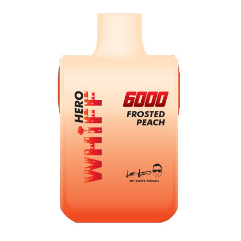 Whiff Hero disposable vape pod by Scott Storch is turning heads with it's pre-filled disposable vape pod system device that is powered by a USB-C rechargeable 400mAh battery (cable not included) and more than 6000 puffs! The 13mL of e-liquid flavors are true to taste, unique, premium and delicious. The Whiff Hero disposable vape device is box shape, sleek, convenient and easy to carry on the go. Whiff's vape device has a powerful draw that provides plenty of vapor and satisfies your vape needs. Check out our collection of disposable vape bundles.